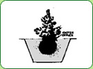 Kresba: Jehličnany se dodávají se zemními baly, které jsou obaleny jutou a případně drátěným opletením. Je bezpodmínečně nutné toto opletení u kmene uvolnit a u juty nastřihnout uzly, aby se předešlo pozdějšímu zarůstání.