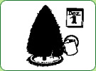 Kresba: Ochrana proti škodám z déle trvajících mrazů, při svítícím slunci, se dosáhne přikrytím smrkovým, jedlovým nebo borovicovým klestem. Chvojí může být u nižších odrůd položeno přímo nahoru na rostlinu nebo u vyšších odrůd postaveno, popř. zabodnuto do země před rostlinu ze sluneční strany. V polohách bohatých na sníh by se měly rostliny trochu svázat, příp. by se mělo na postavenou laťovou konstrukci položit chvojí.